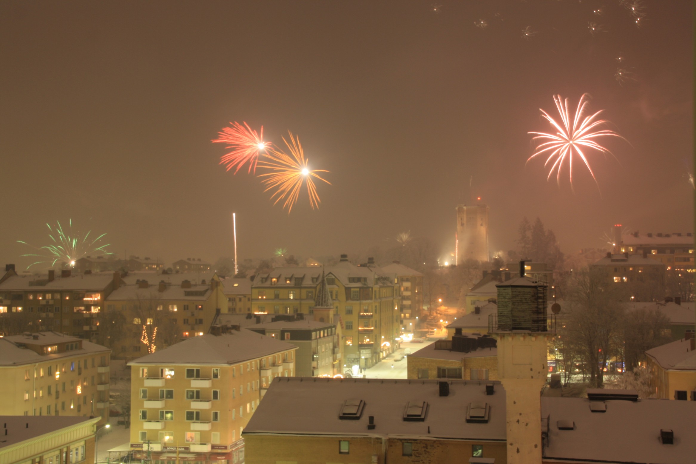 Silvester haben wir uns bei ziemlich kalten Temperaturen auf die Touri-Tour Katharina Hissen, Gamla-Stan, Riksdag gemacht, das erkennt man sicher auf den Bildern. Abends sind wir zu Gerald in den 5. Stock zur Silvester-Party gegangen, und haben mit Feuerzangbowle und Feuerwerk aus dem 9. Stock das Jahr 2009 ausklingen lassen.